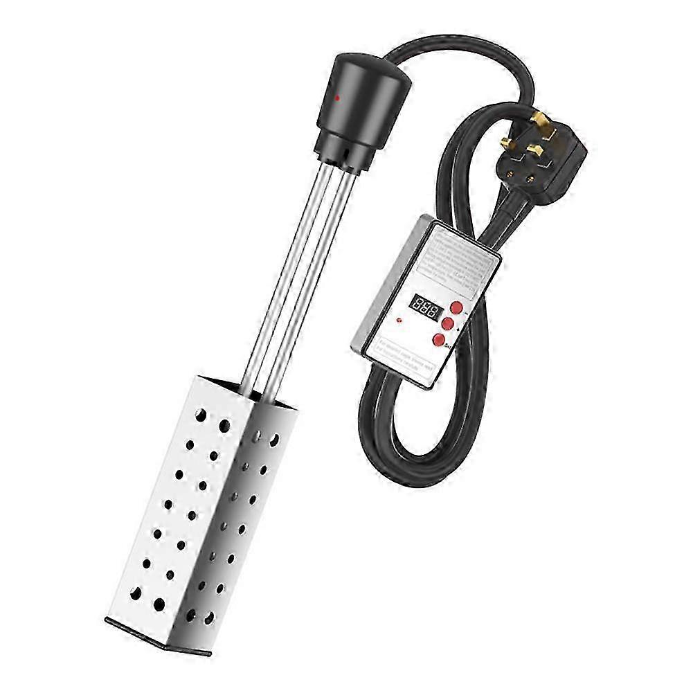 Feature: Voltage: 220V Power: 2500W Automatic power-off Constant temperatureSupports set temperature; maximum temperature is 99°C, minimum temperature must be 5°C greater than current water temperature It is recommended not to heat the product to 99°C. The product's power cord will then also be unable to dissipate heat in the hot water, leading to easy ageing damage. Note: The voltage of the heater is divided into 220V The power of the 220V heater is 2500W, and the plugs have UK plug Operation method: After power-on, the screen displays 000, set the heating time by "+" and "-", then press "set" to enter the temperature setting page, set the temperature by "+" and "-", press "Set" to confirm, if you do not need to set the heating time, press "Set" for 3 times after power-on, you can enter the temperature setting page