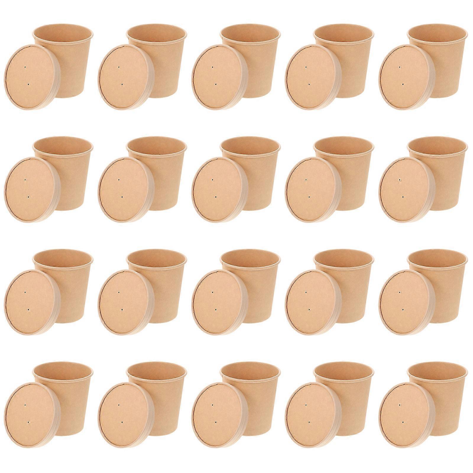 Brown Paper Bowls Kraft Paper Takeout Containers Portable Soup Containers Waterproof Sealing 20Pcs