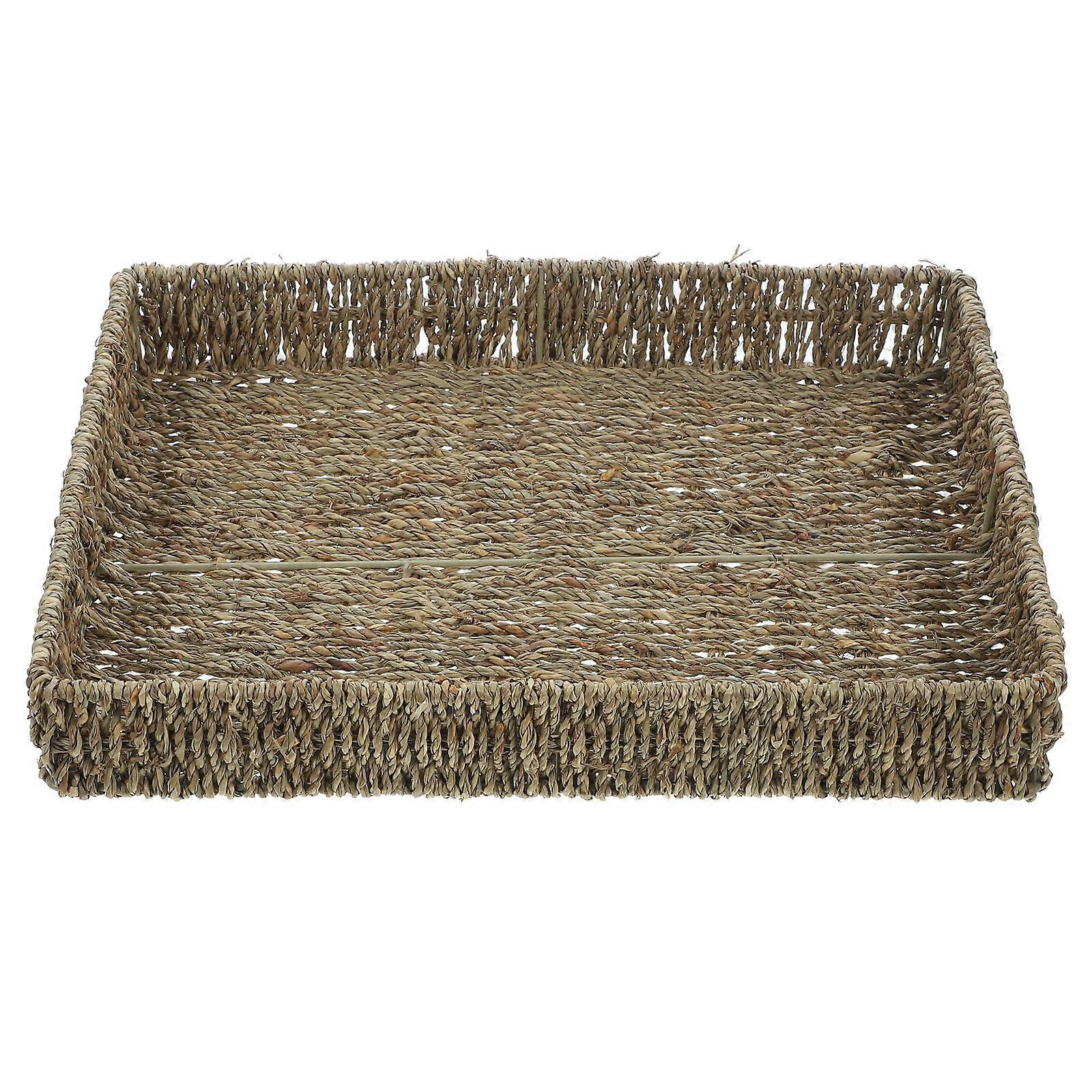 The chic and delicate woven basket is perfect for adding a fresh touch and some natural color to your interior. Fresh and rustic look design, very and practical. A for household decoration and storage use. woven storage container for fruit, snacks, sundries, etc. Features - Color: Light brown - Material: Seaweed, iron - Size: 38.00X27.50X6.00cm/14.93X10.81X2.36inch - It can be used as a household storage basket. It will be the beautiful scenery of your home. - Very light weight and easy to move. can put it wherever you like. - Multi-function, it can be used for storage of many items, such as snacks, fruits, picnic, etc. - Perfect for fruit storage, snacks storage, sweets, etc. Very elegant and chic. - Delicate woven process, very simple and generous appearance, decorative and chic. Package list: 1 x Storage Basket