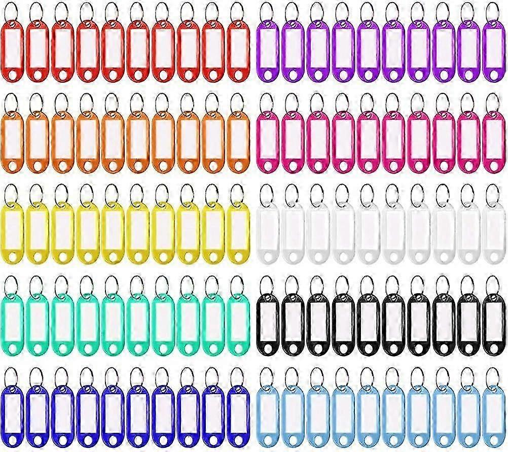 Luggage Key Rings, 100 Pcs Baggage Key Tag Holder Id Tags Plastic Travel Identification (10 Colors)