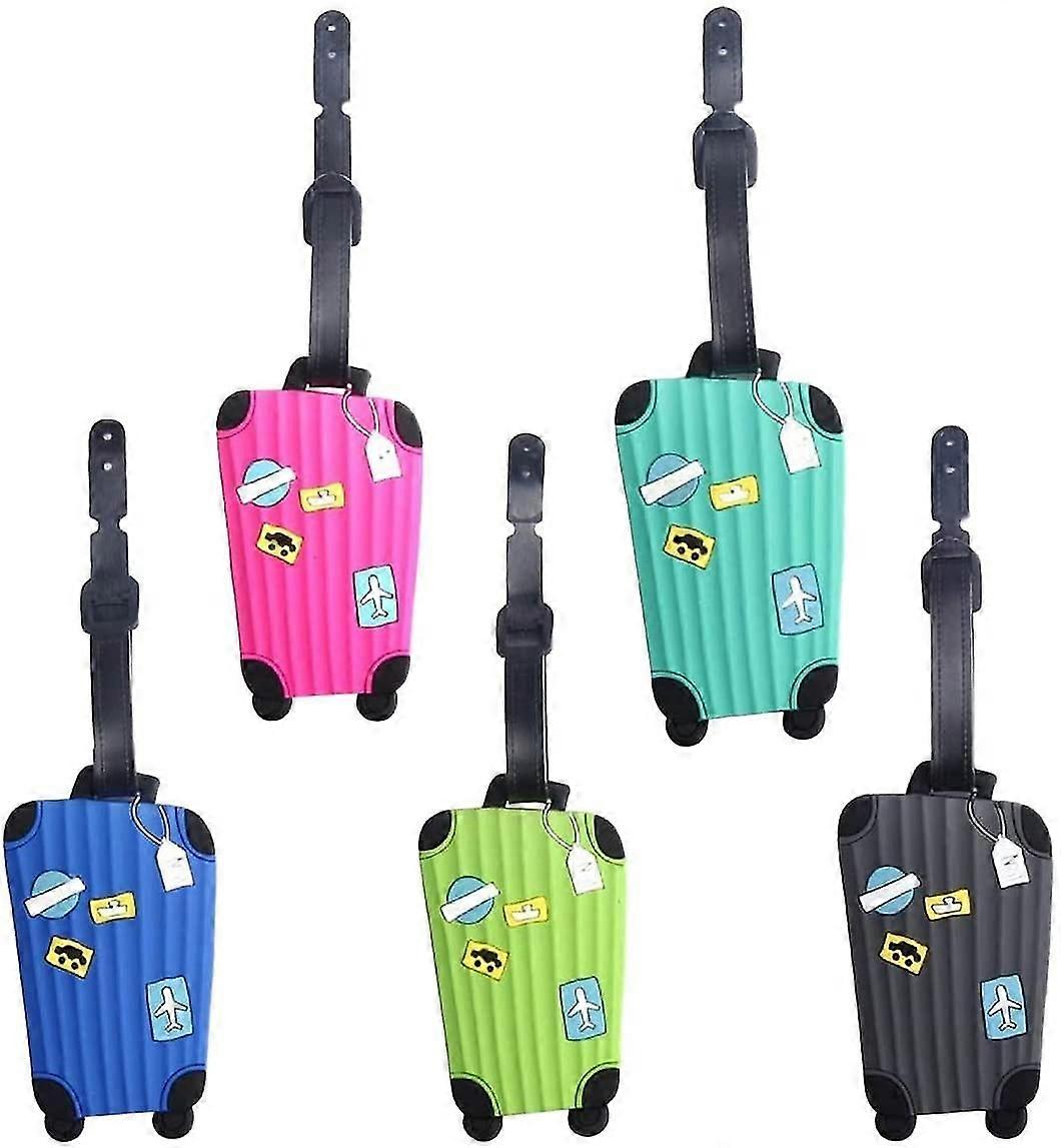 Cute Suitcase Shape Design: Bright colors and cute patterns make your suitcase easy to identify.Nice info card: There is an info card on the back where you can write your personal information to keep your luggage safe.Widely used: useful luggage identification tags, and unique decoration for your luggage.Packing List: 5 Luggage Tags, random color; Material: PVC; Size: Approx. 3.5" x 2.2" (9 x 5.5cm).100% Satisfaction Guarantee: I have any questions, please feel free to contact us and we will find the right solution for you.