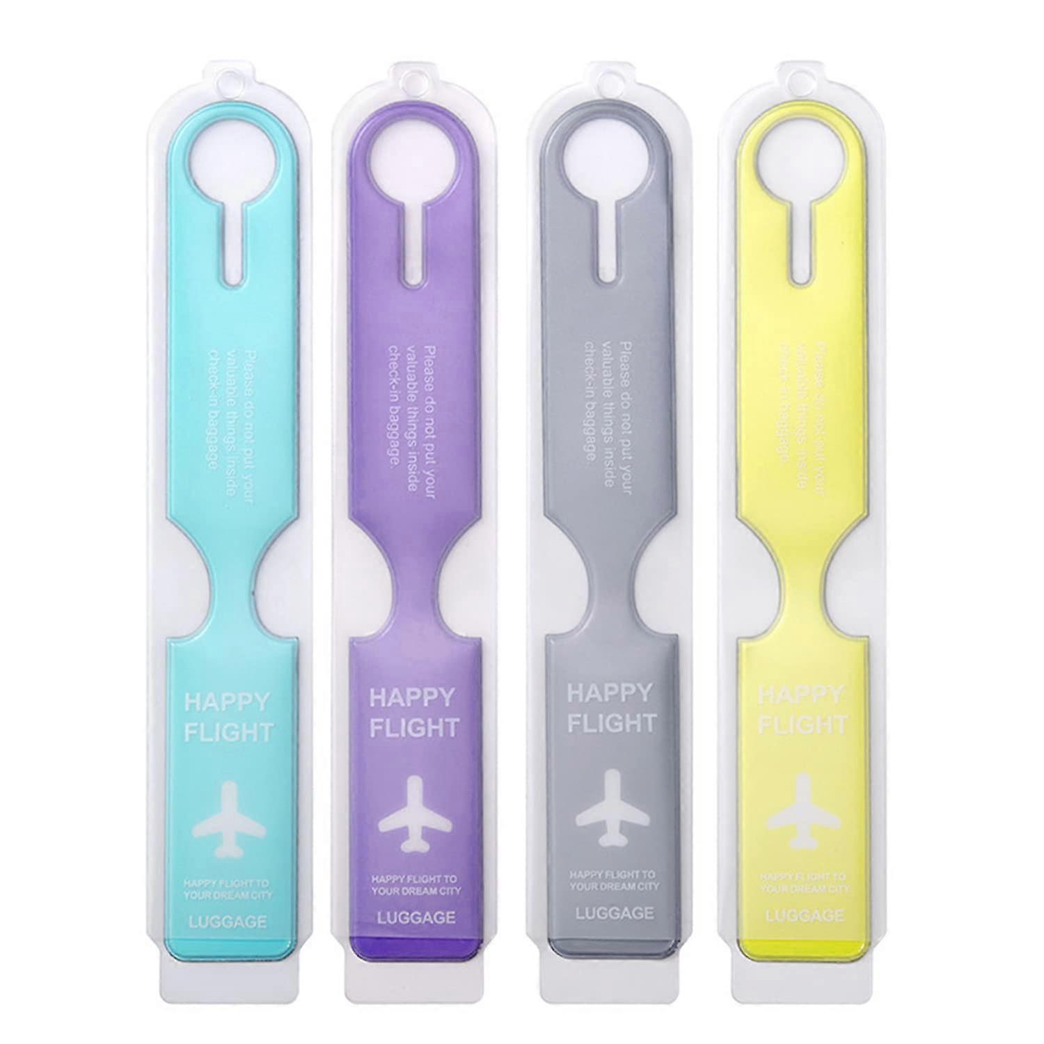 Pack of 4 Plastic Suitcase Tags with Address Labels for Luggage Identification, Travel Bags and Aeroplane Compatibility