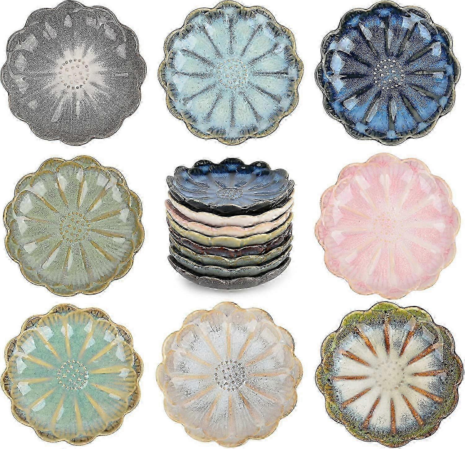8-Piece Ceramic Dipping Bowl Set with Chrysanthemum Design 3 oz Capacity Accompanied by Small Side Dish Bowls for Sushi and Soy Sauce