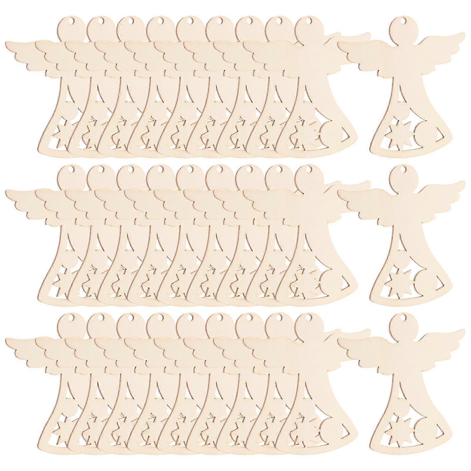 Graffiti Wood Cutouts Diy Wood Slices Angel Shape Khaki 8x8cm For Children And Teens Home Decoration 30Pcs