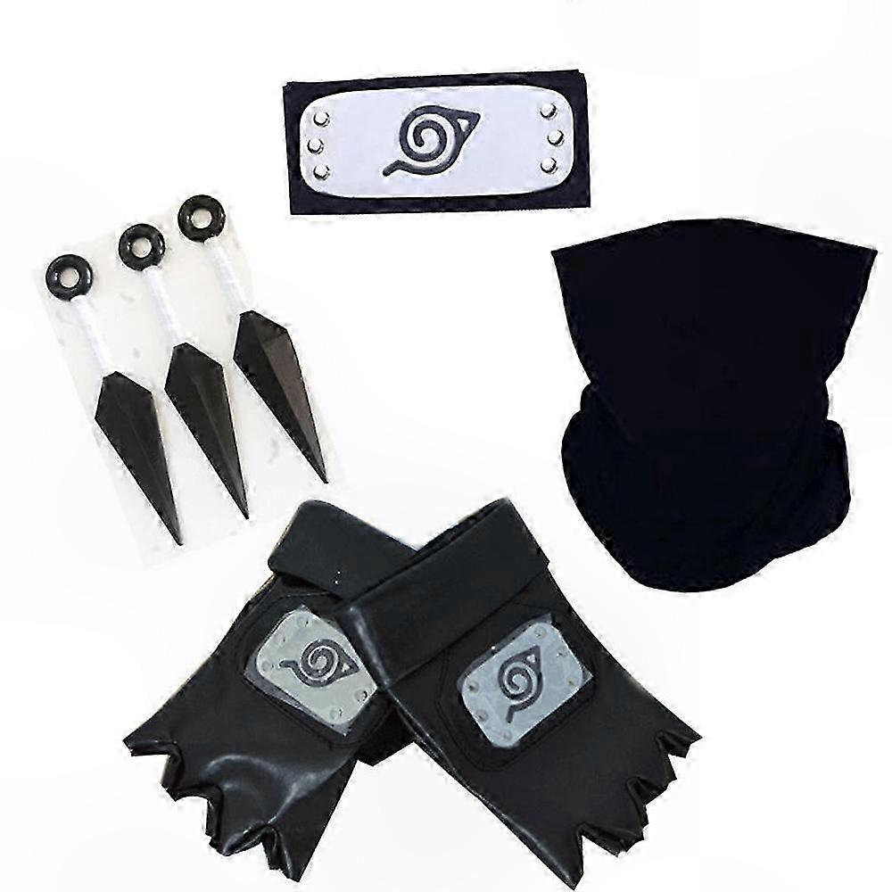 Ninja Headband with Leaf Symbol, Anime Mask, Gloves & Weapon Props for Cosplay Costume Accessory Set