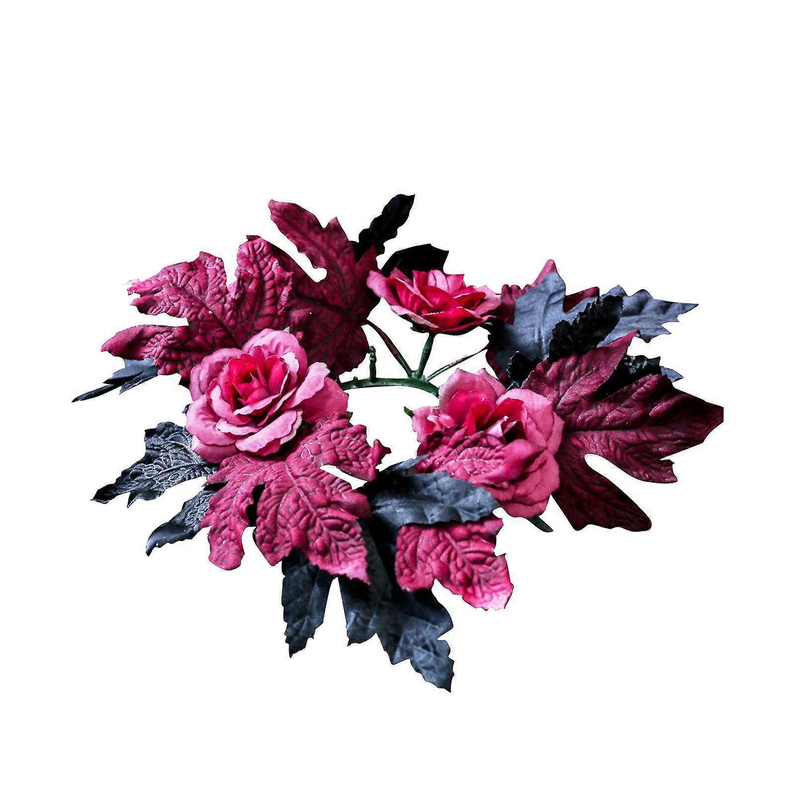 Halloween Artificial Rose with Leaves Candle Ring Wreath Desk Decoration