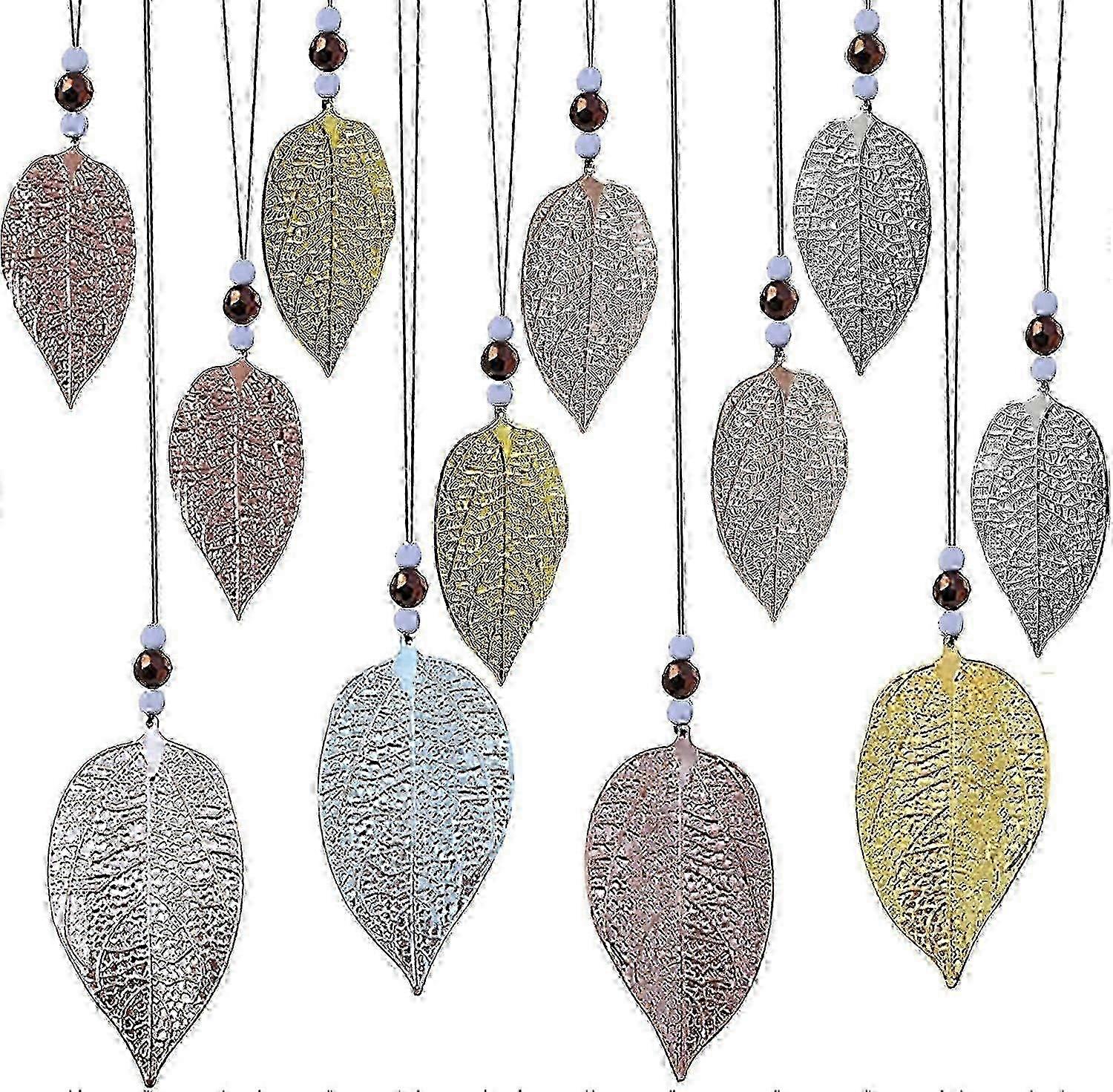 Leaf Pendant Decoration, 12pcs Hanging Decoration, Window Decoration, Shimmer Leaf Decorative Hanger, Metal Decorative Pendant Leaf