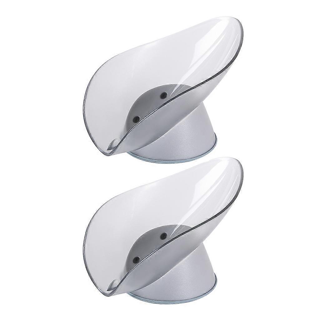 Leaf Shape Soap Dish 2pcs Creative Drainage Soap Holder for Bathroom & Kitchen Multi functional Storage Rack Grey