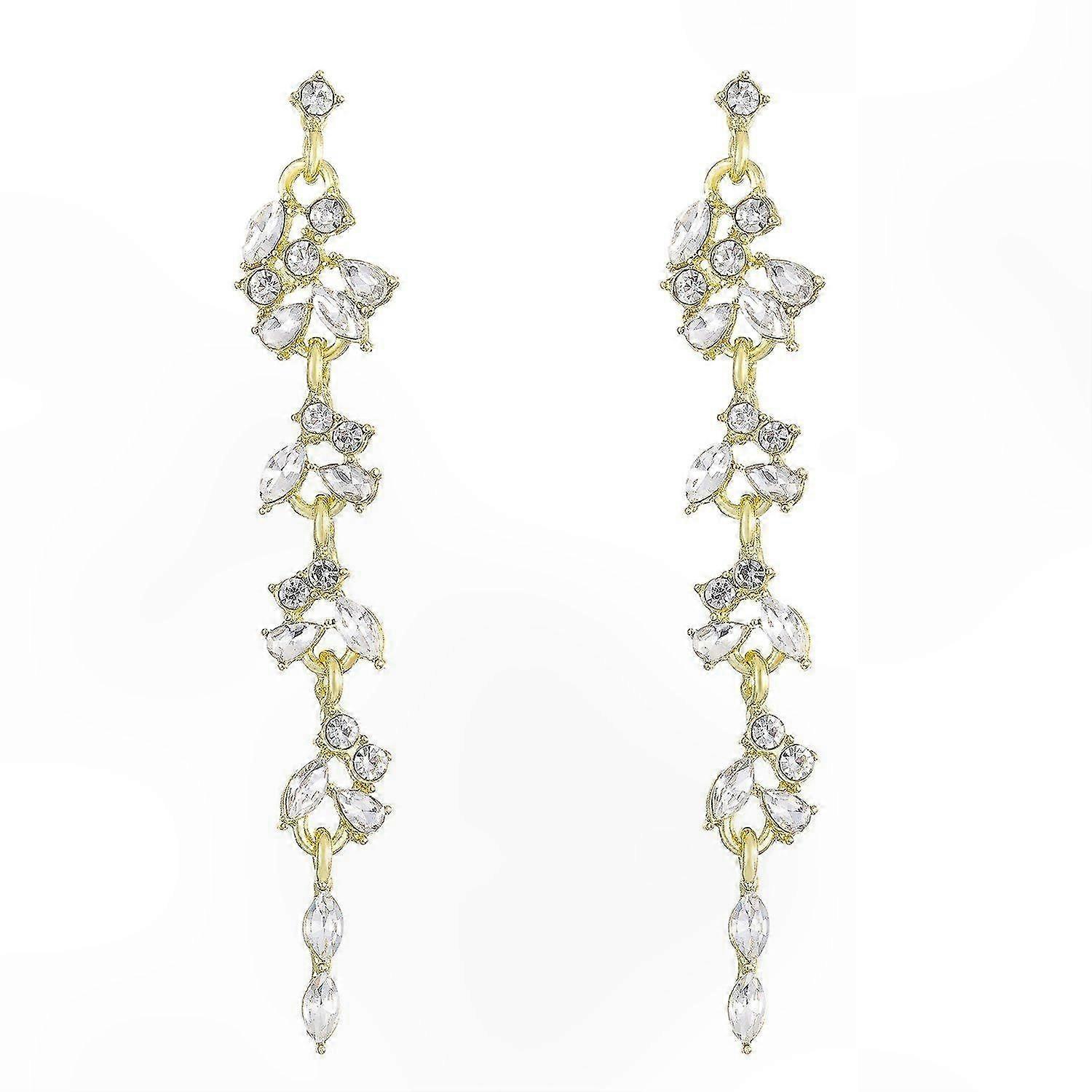 Gold Crystal Tassel Earrings with Leaf Motif and Nature-Inspired Design Accents