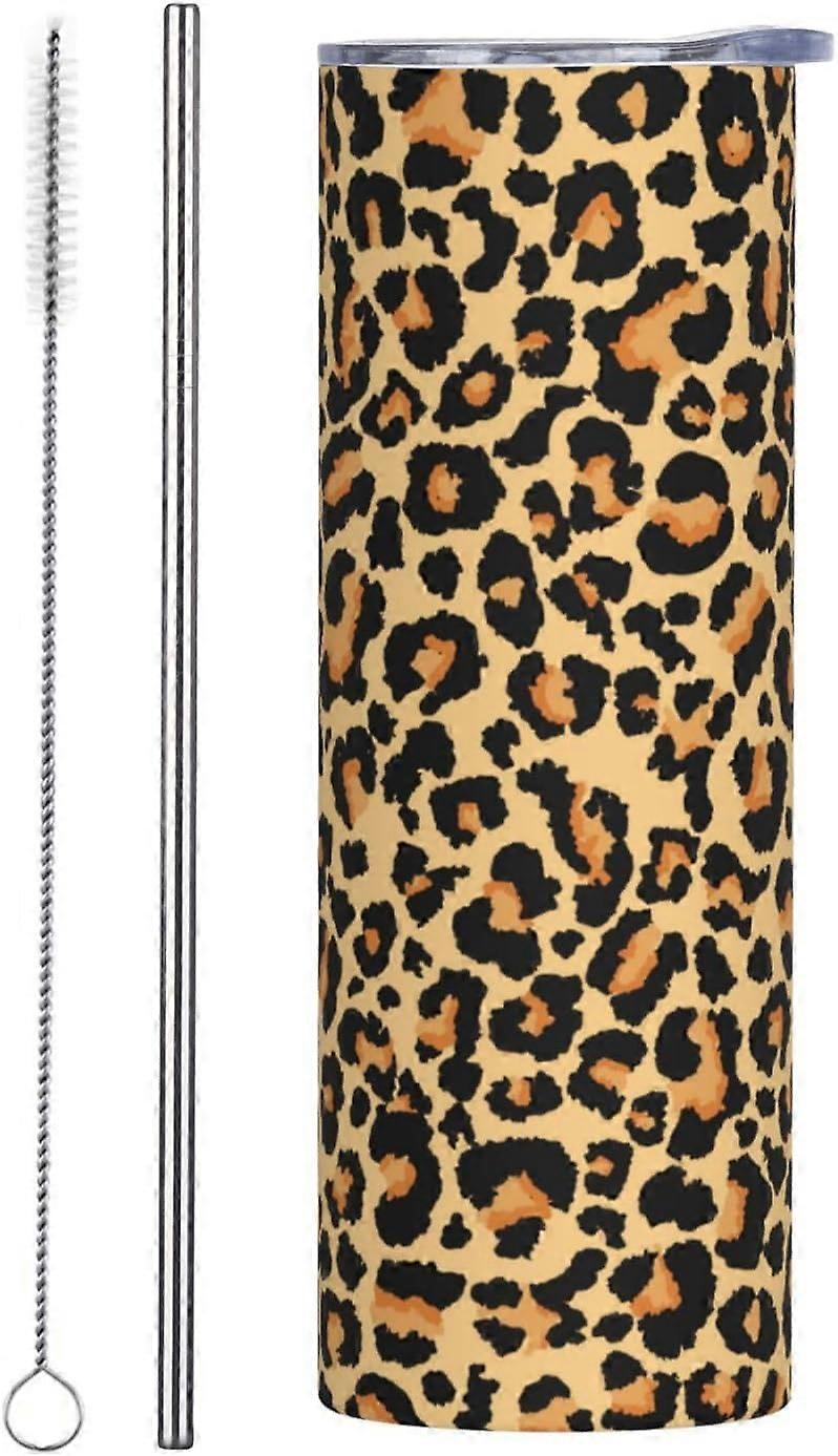 20oz Leopard Tumbler with Lid and Straw Animal Skin Pattern Skinny Stainless Steel Tumblers Insulated Coffee Travel Mug Cups Water Bottle Gift for Wom
