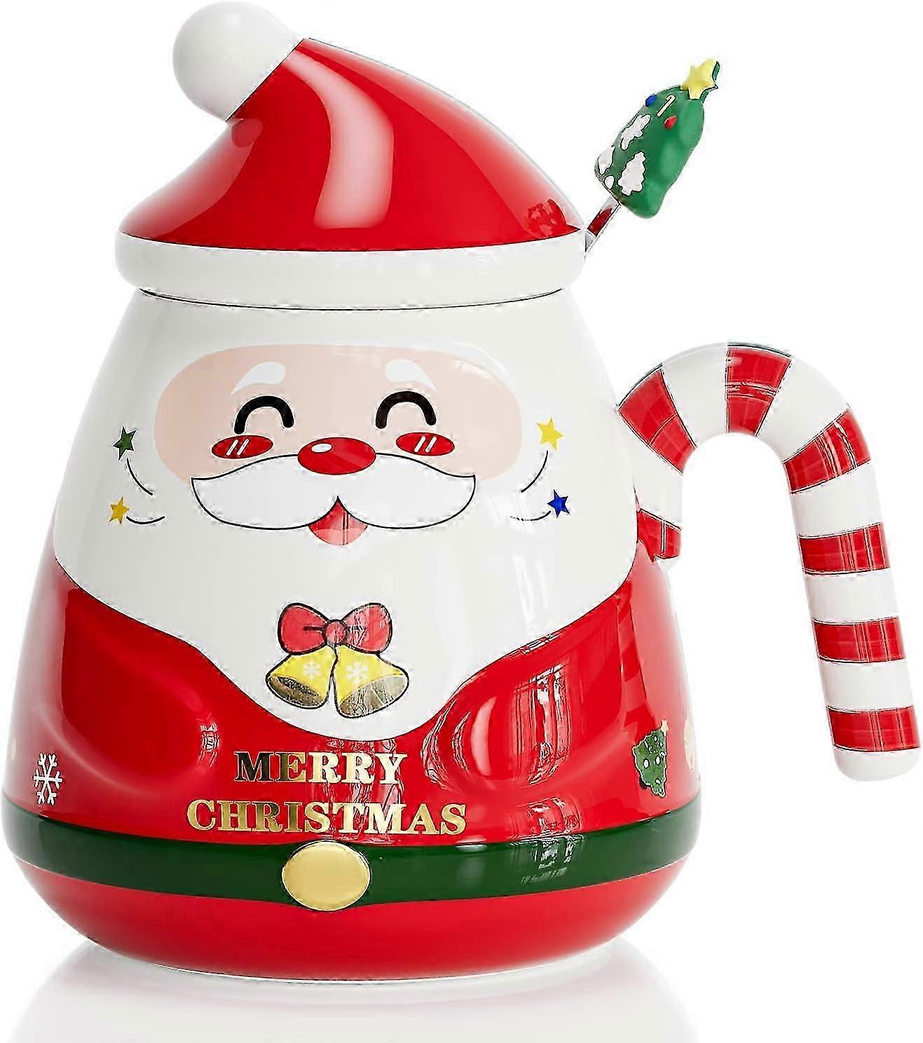 Christmas Coffee Mug with Lid and Stirrer: Lovely Ceramic Tea Cups for Festive Xmas Gift for Parents