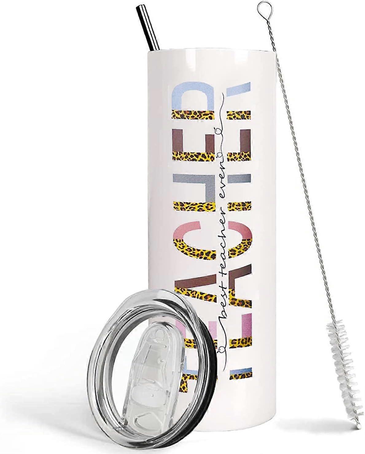 Teacher Tumbler with Lid and Straw Best Teacher Ever Mug Cup Teacher Appreciation Gifts Leopard Teacher Gifts Teacher Birthday Gifts Coffee Travel Mug