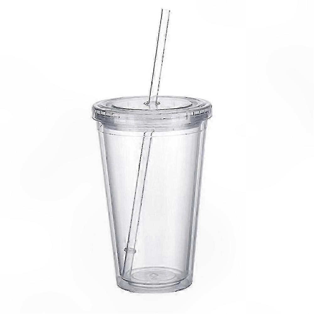 Insulated Transparent Tumbler with Lid and Straw, 500ml Capacity Double Wall Plastic Cup for Beverages