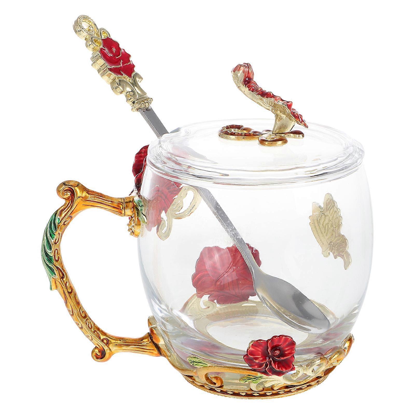 Elegant Enamel Glass Coffee Mug Set with Lid and Spoon, Transparent Stylish Design for Home or Office Use, Luxury Drinkware for Coffee, Tea, and Milk