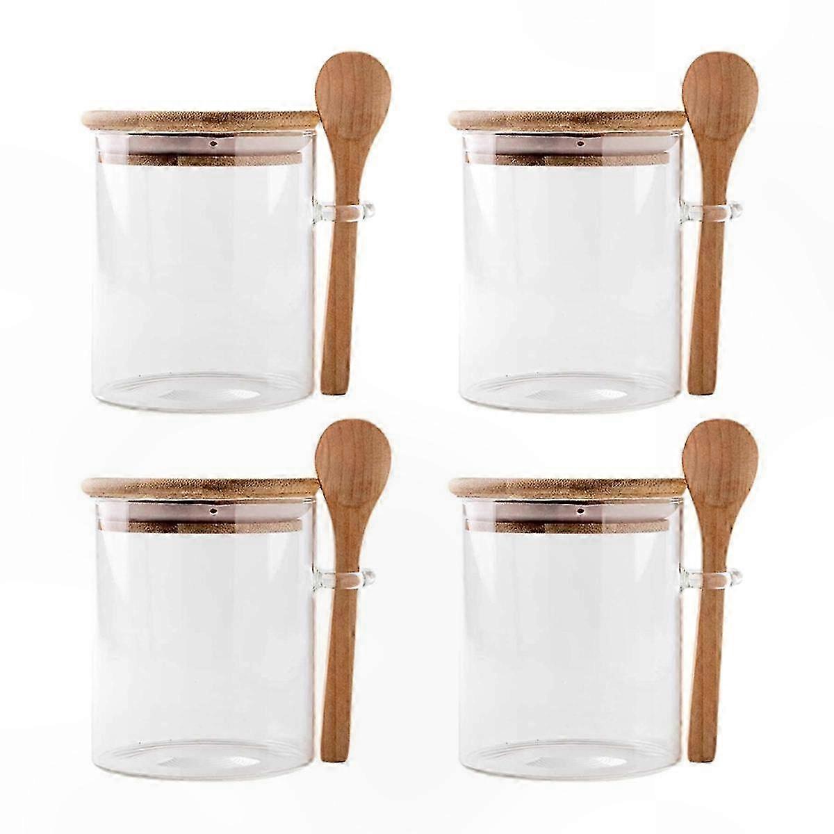 4-Pack Glass Jars with Lids and Spoons for Overnight Oats and Loose Tea Storage