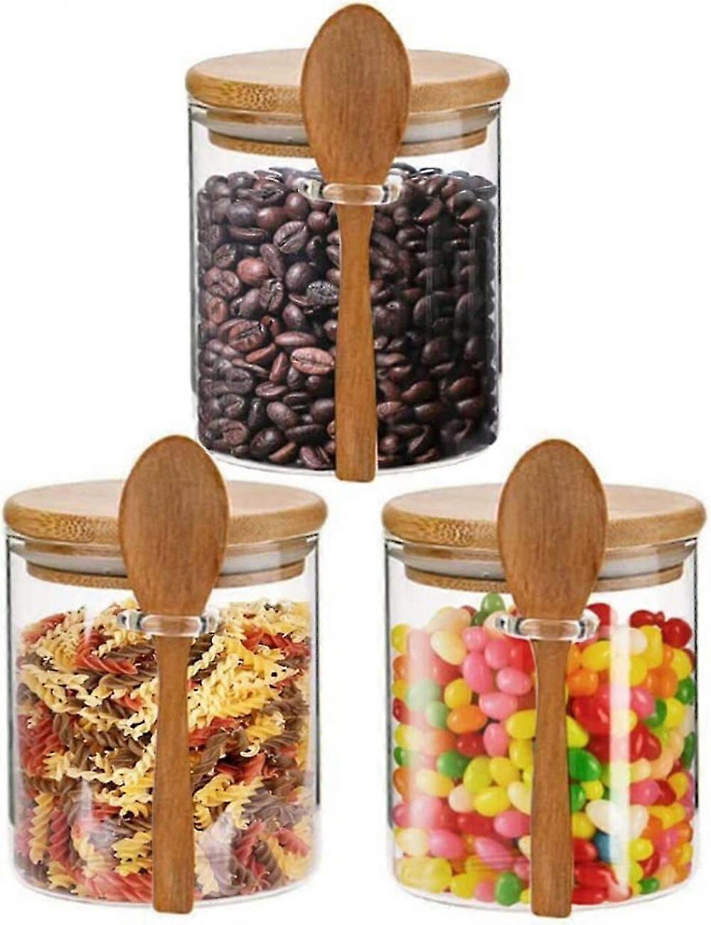 Airtight Glass Jars with Lids and Spoons, 3-Piece Glass Containers Set