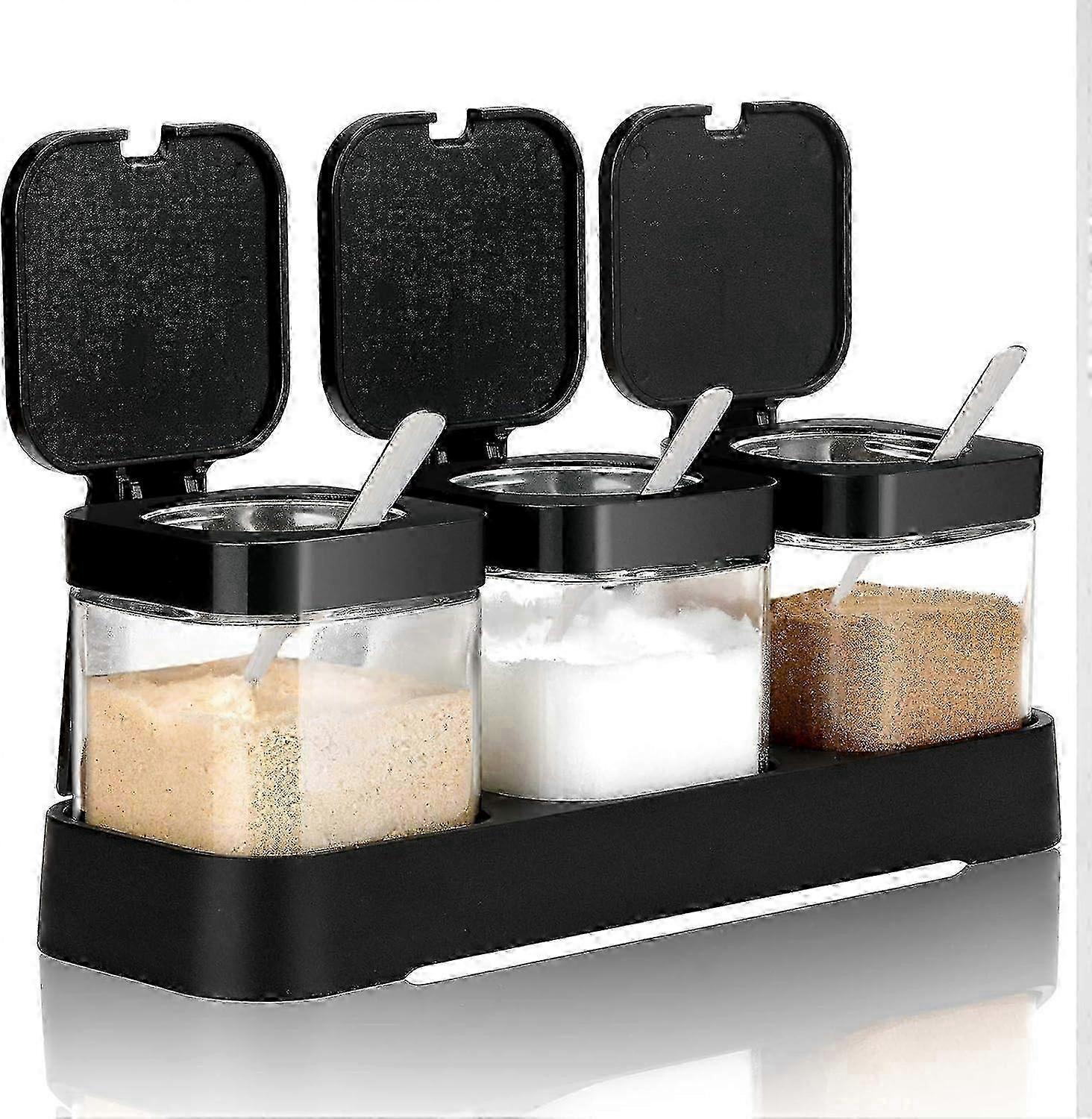 Clear Glass Condiment Jar with Lid and Spoon, 8 oz Spice Container, Sugar Bowl Set for Kitchen Counter Storage