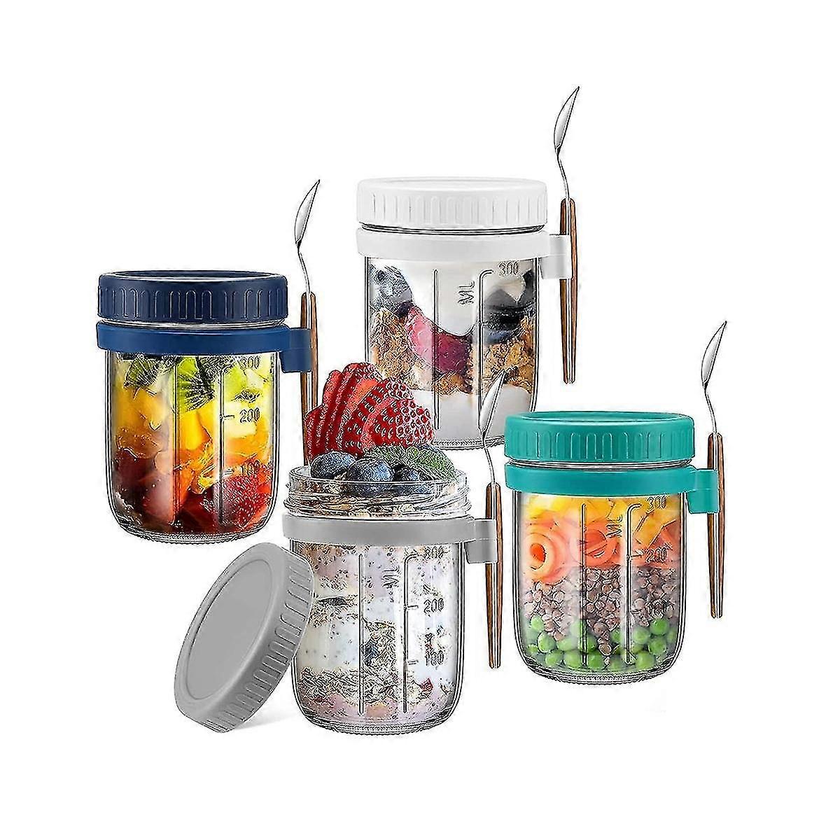4 Pack Overnight Oats Containers With Lids And Spoons, 12 Oz Glass Mason Overnight Oats Jars, Airti