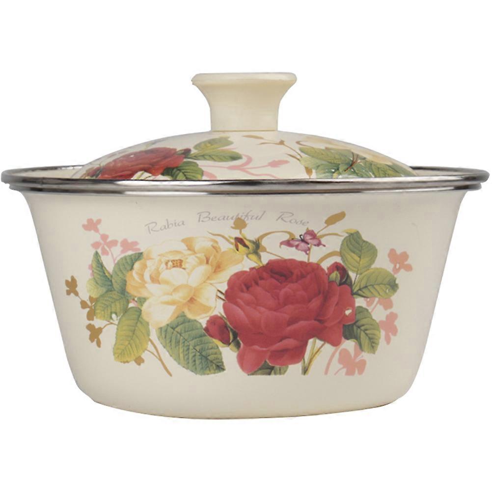 Vintage Enamel Bowl with Lid – Retro Kitchen Mixing, Dough Kneading, and Food Storage Basin for Dumplings and Serving