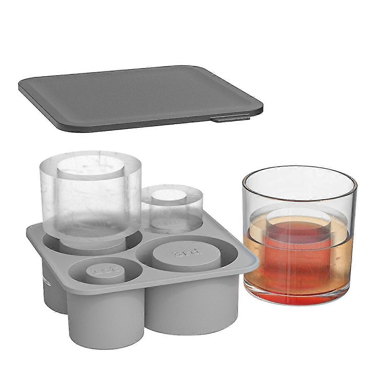 Silicone Ice Mold with Lid for Making 4 Hollow Cylinder Ice Molds for 20/30/40 Oz Cups for Chilling Cocktails Grey