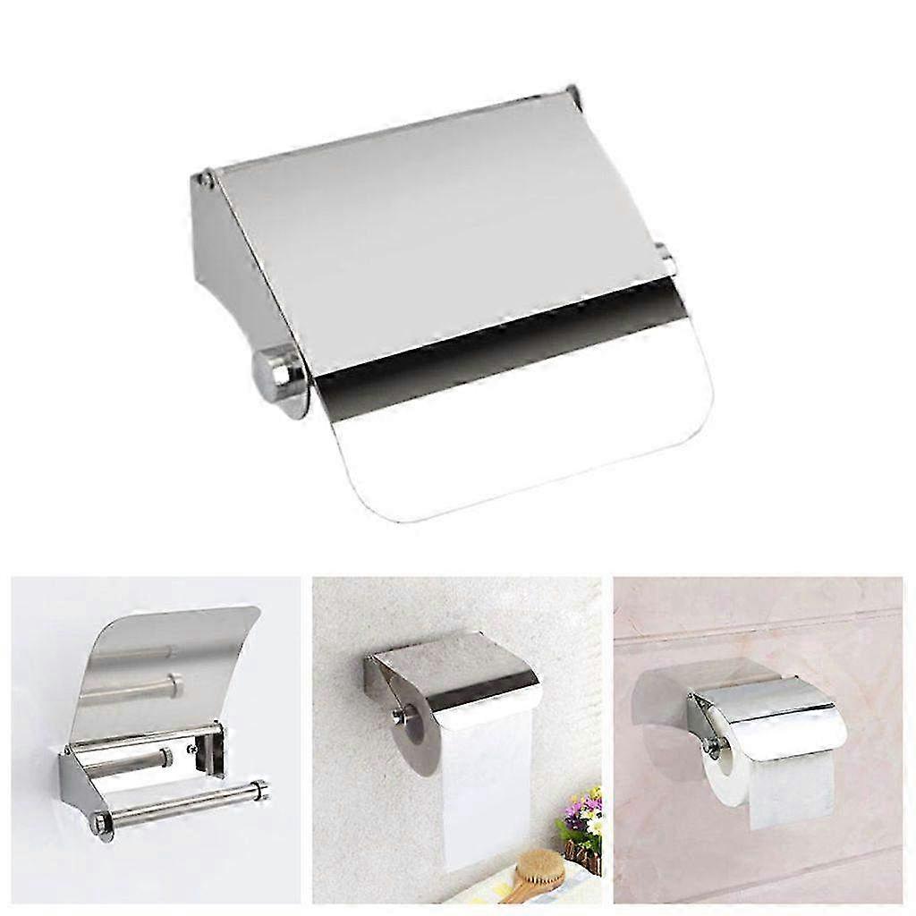 Stainless Steel Toilet Paper Holder with Lid - Wall-Mounted Bathroom Roll Dispenser for Convenient Storage & Easy Access