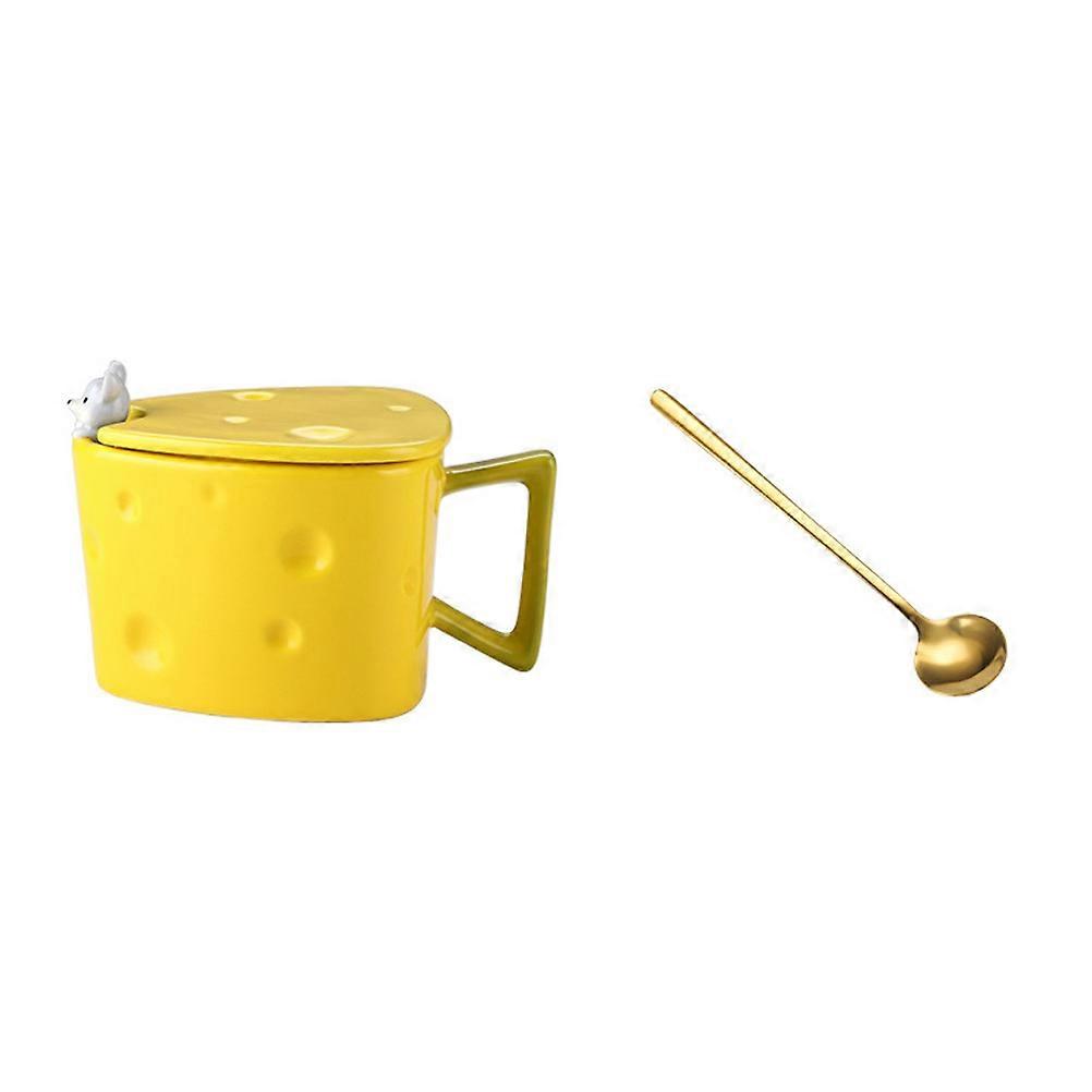 Ceramic Cheese Shaped Coffee Mug with Lid and , High Grade Milk Container for Hot or Cold Drinks, Cute Tea Cup for Kitchen, Office, Breakfast, and