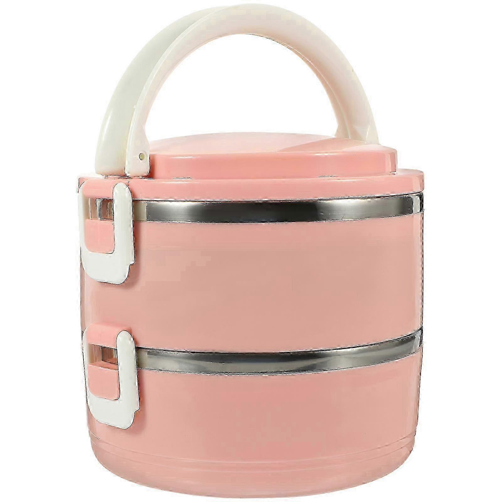 Portable Double-Tier Bento Box with Lid - 15x14cm Pink Lunch Container