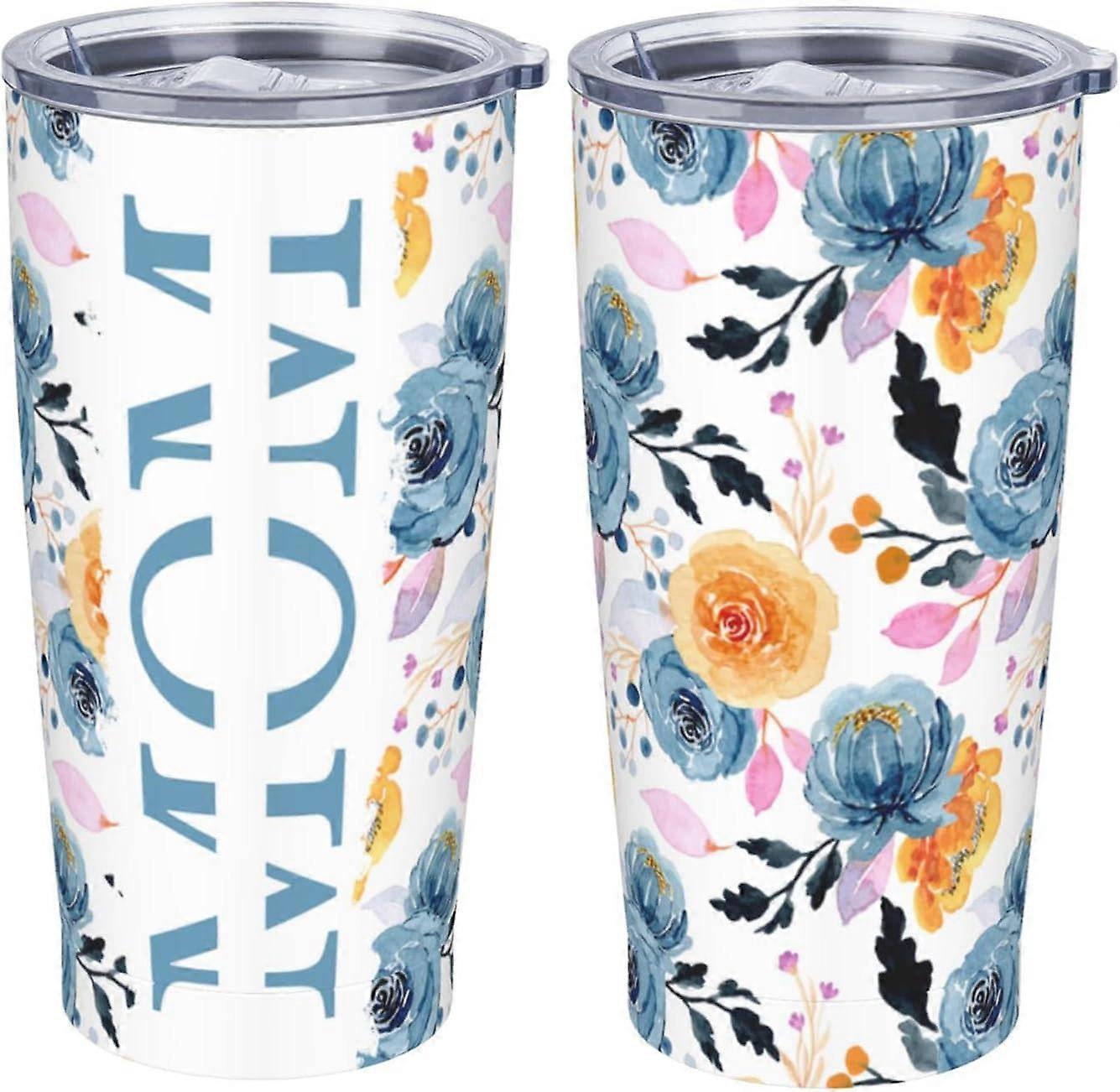 Mom Stainless Steel Thermal Tumbler with Lid, Funny Mom Flower Tumbler for Mama Women Mothers Day Gifts, Double Wall Vacuum Insulated Travel Mug, Birt