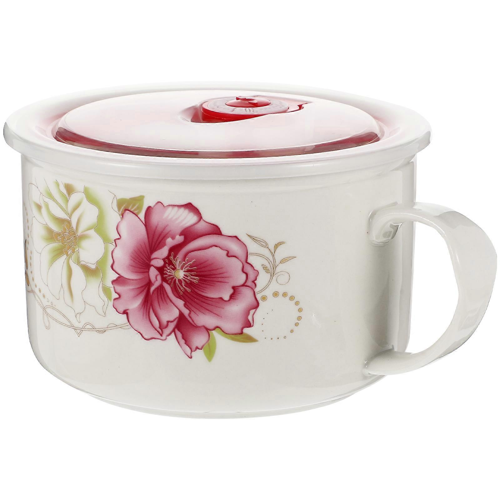 Ramen Noodles Bowl With Lid Ceramic Household Lunch Eat Bowl Students Home 13.5X13.5X8.5CM 1Pack