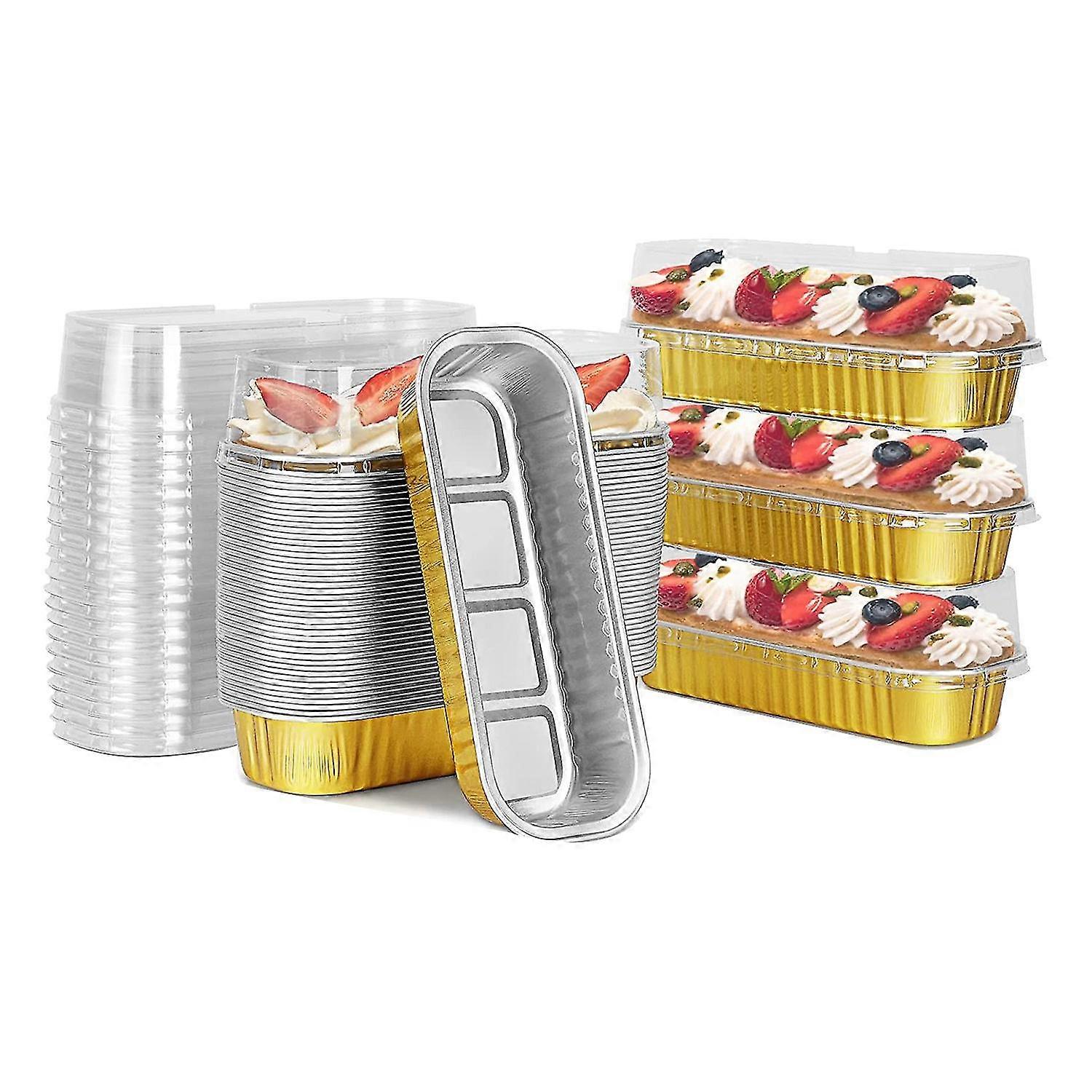 Disposable Mini Loaf Pans With Lids, 50pcs 6.8oz Aluminum Foil Narrow Cake Pans,rectangle Cupcake B