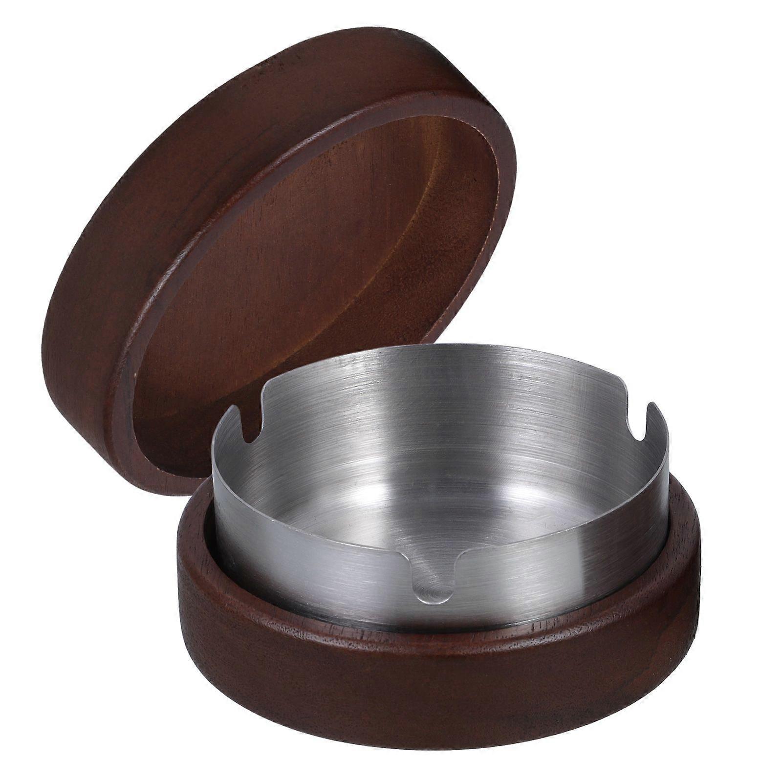 Outdoor Wooden Ashtray with Lid Windproof Ashtray with Stainless Steel Liner Portable Ash Trays for Home Office Patio Table Balcony Indoor Outdoor