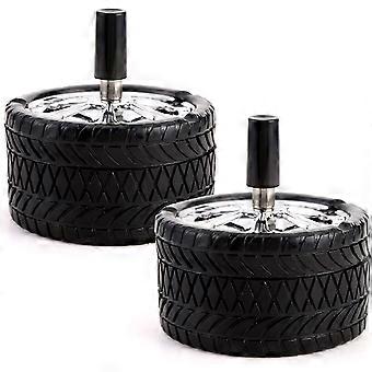 Ashtray With Lids 2 Pcs Rotating Closed Ashtray Smell Proof Stainless Steel Push Windproof Ashtray For Cigarettes For Office Decoration Indoor Outdoor