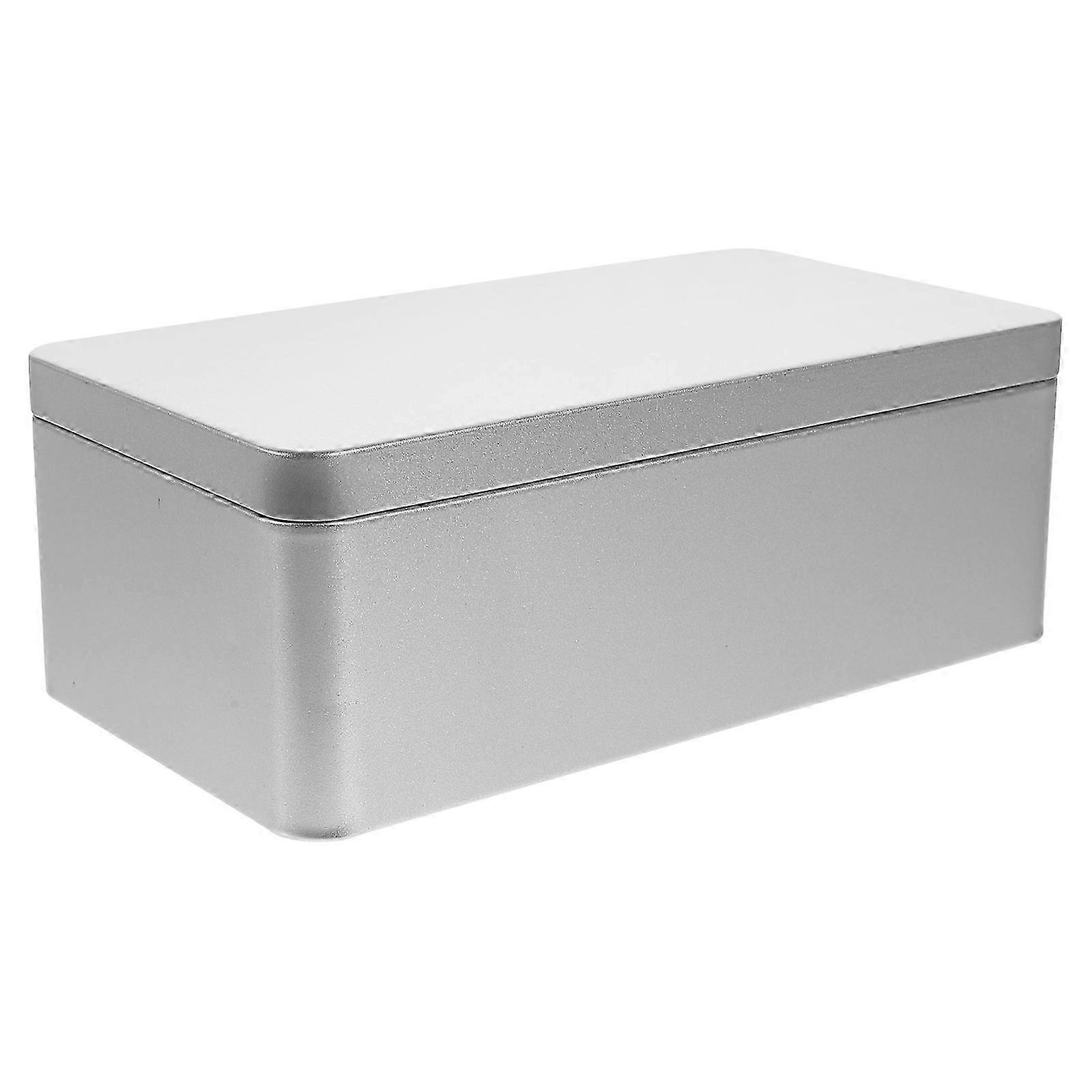 Empty Metal Tin Box with Lid - 18x10x6.7cm Silver Storage Container for Treats & Tea
