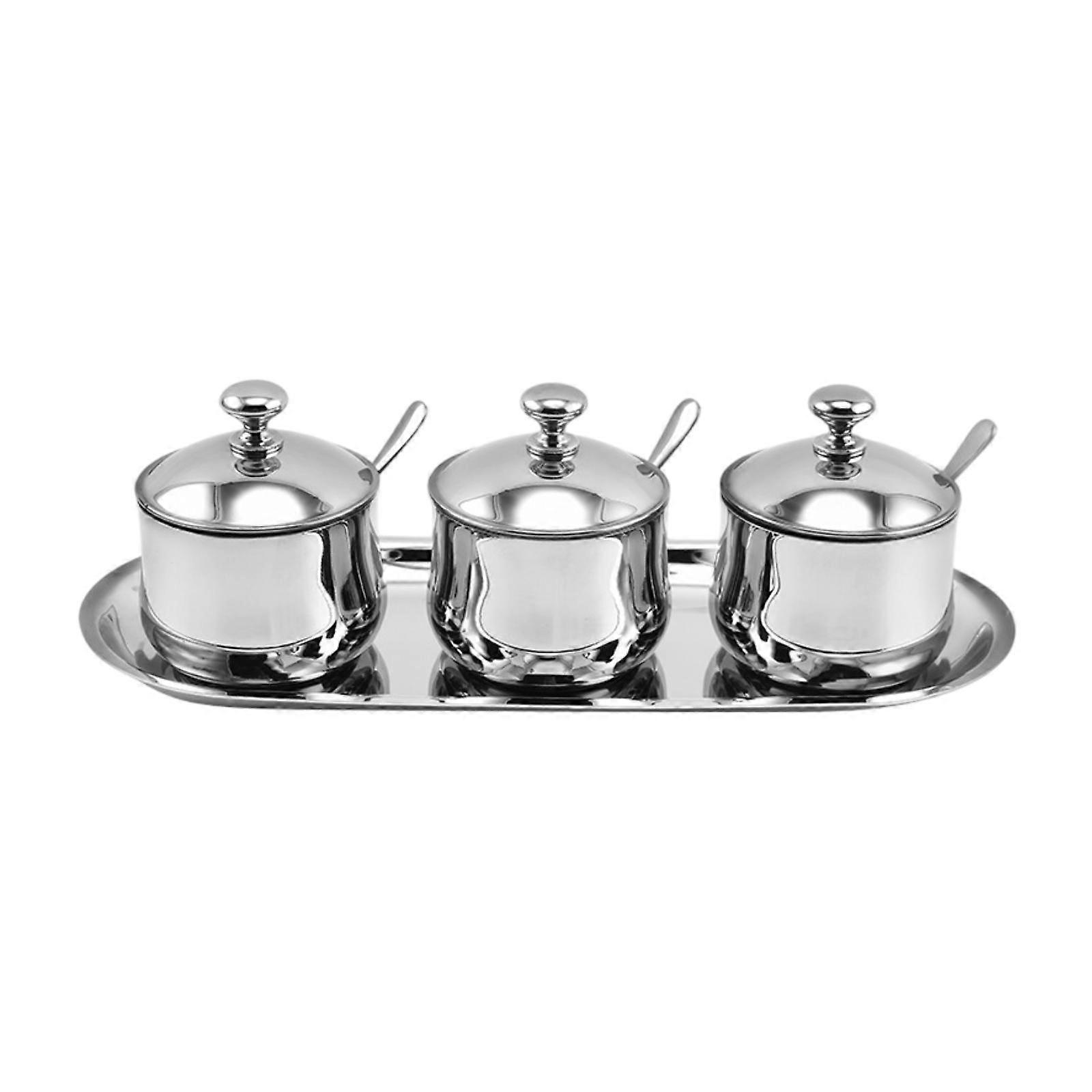 Divided Seasoning Box with Lid Spoon and Tray Condiment Box Storage Holder