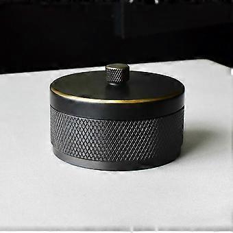Black Ashtray with Lid - Smokeless Outdoor Cigarette Butt Container, Metal Brass Odorless Design for Terrace Use