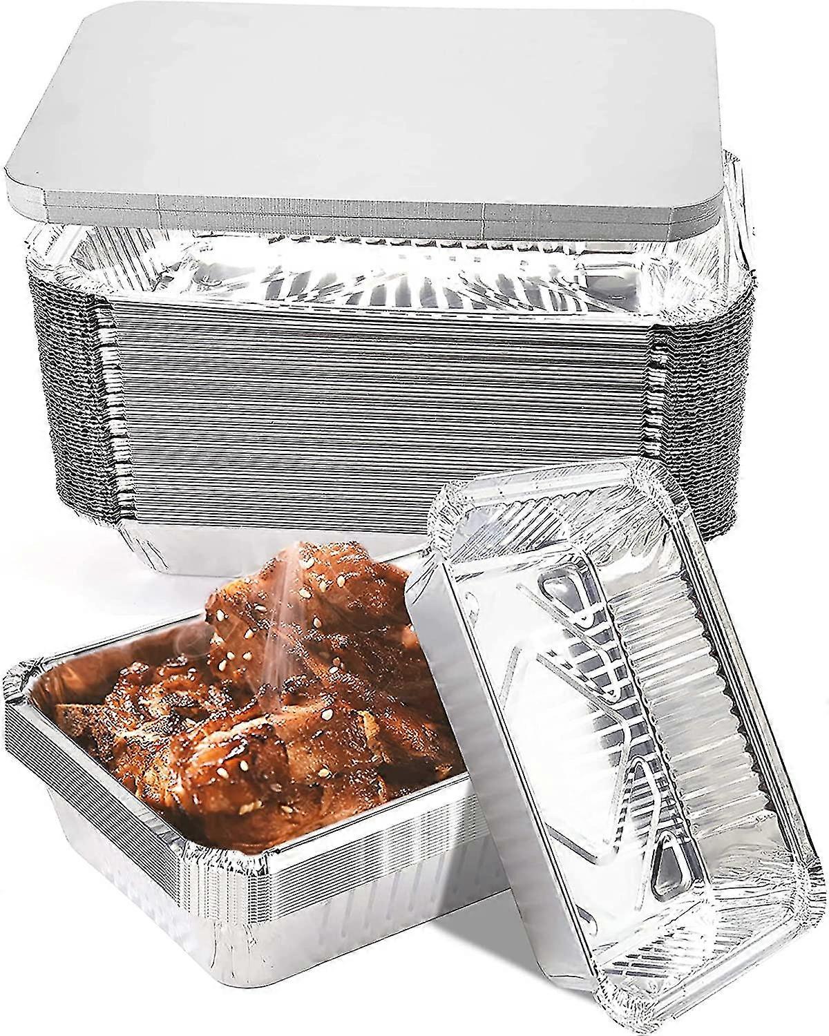 20 Pack Disposable Aluminum Oblong Foil Pans With Lid - Foil And Take Out Containers - Recyclable Tin Food Storage Tray For Cooking, Baking, Meal Prep