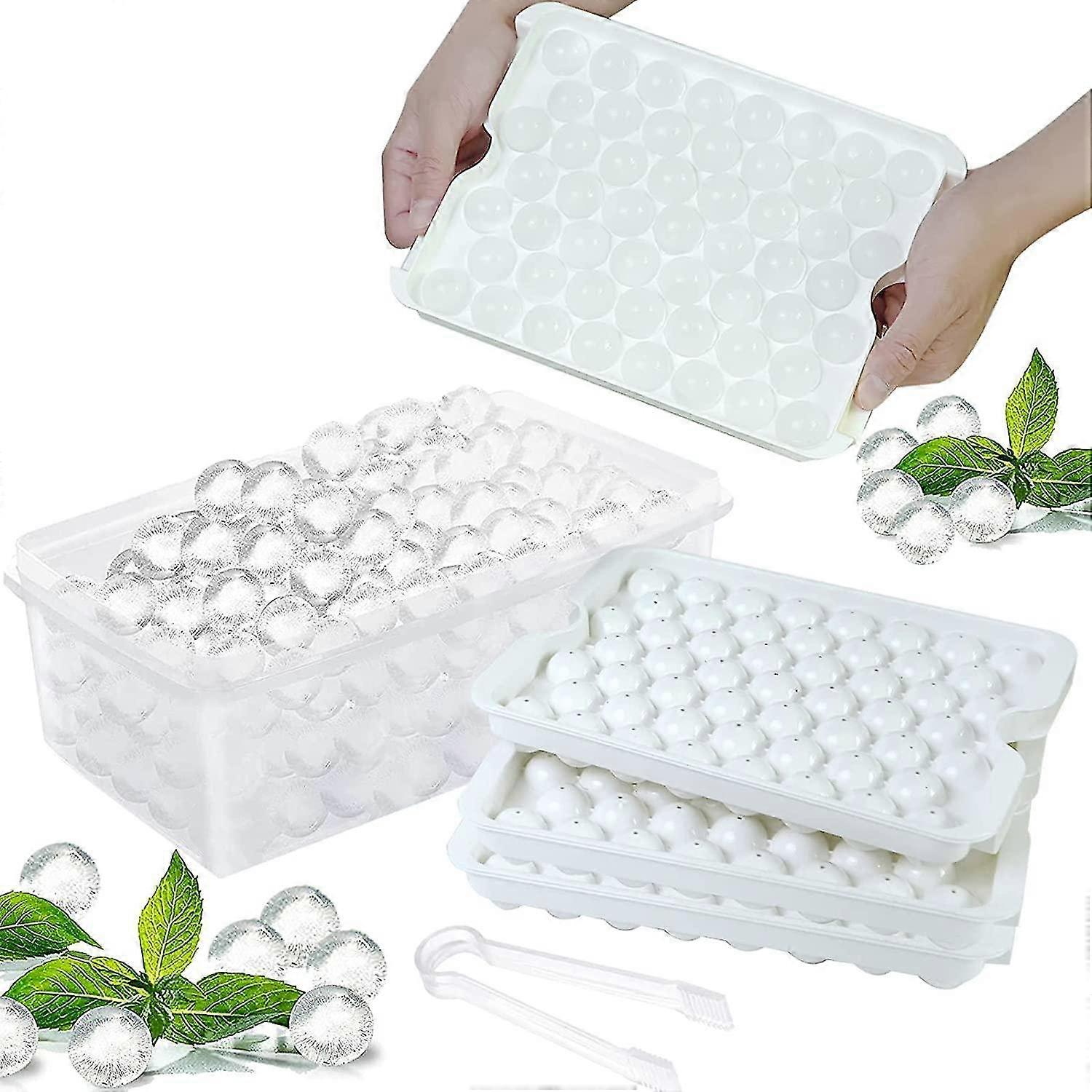3 Pack Round Ice Cube Tray with Lid, for Making Ice Chilling Cocktail Whiskey Coffee (White)