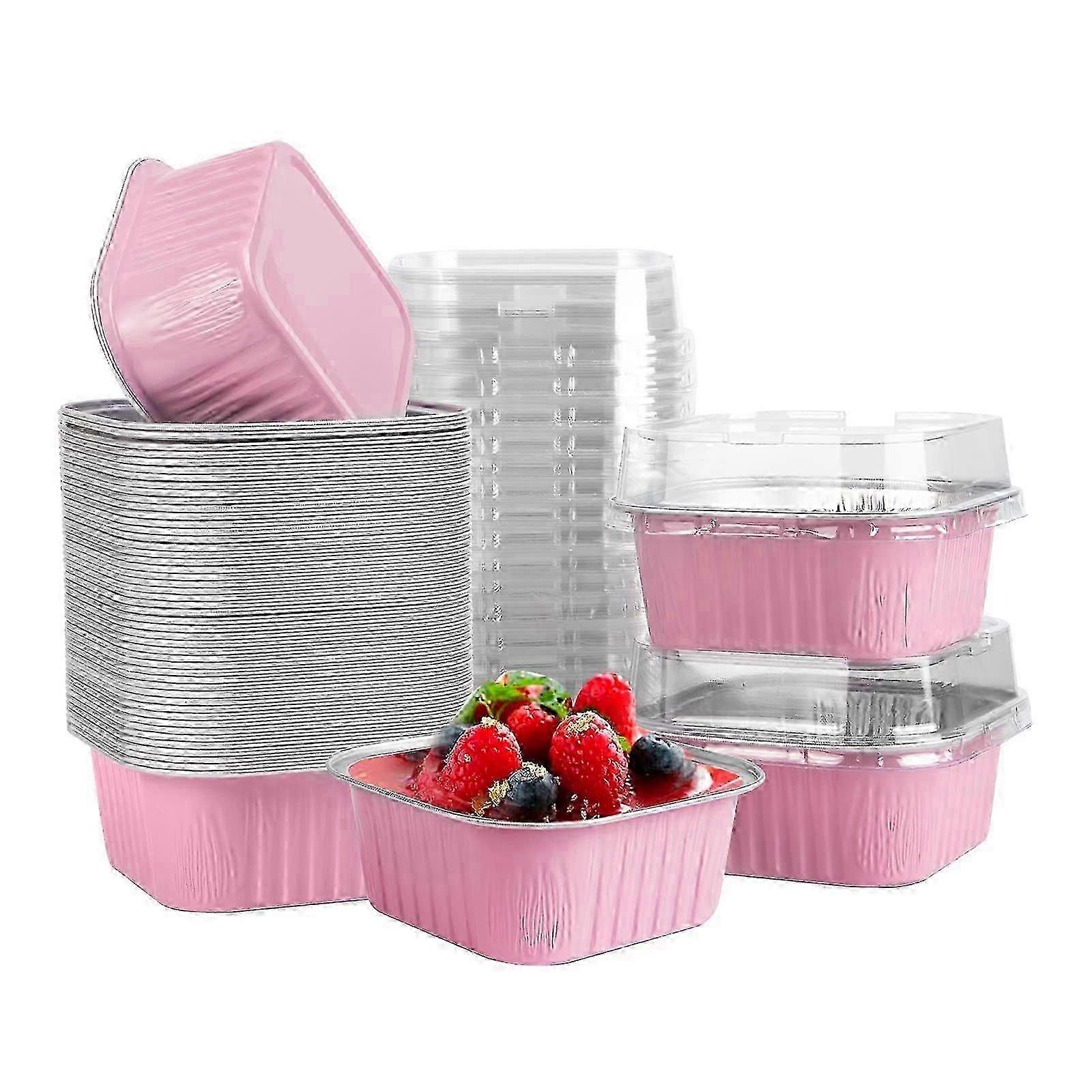 50 mini square cake pans with lids, disposable, 150 ml, for cakes