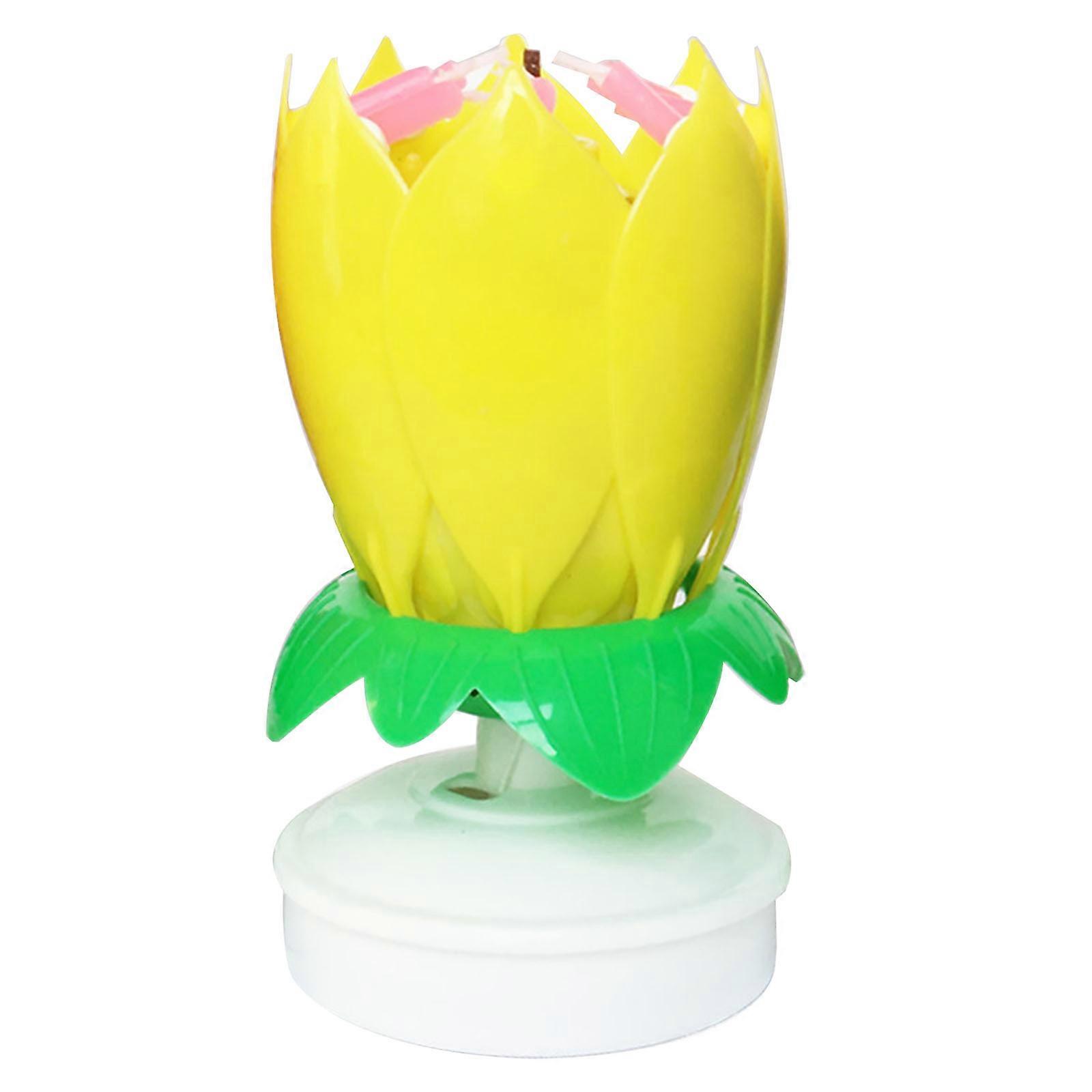 Lotuses Flower Candle Rotating Musical Candle Kids Children Cake Music Candle Decorations for Birthday Surprise Yellow