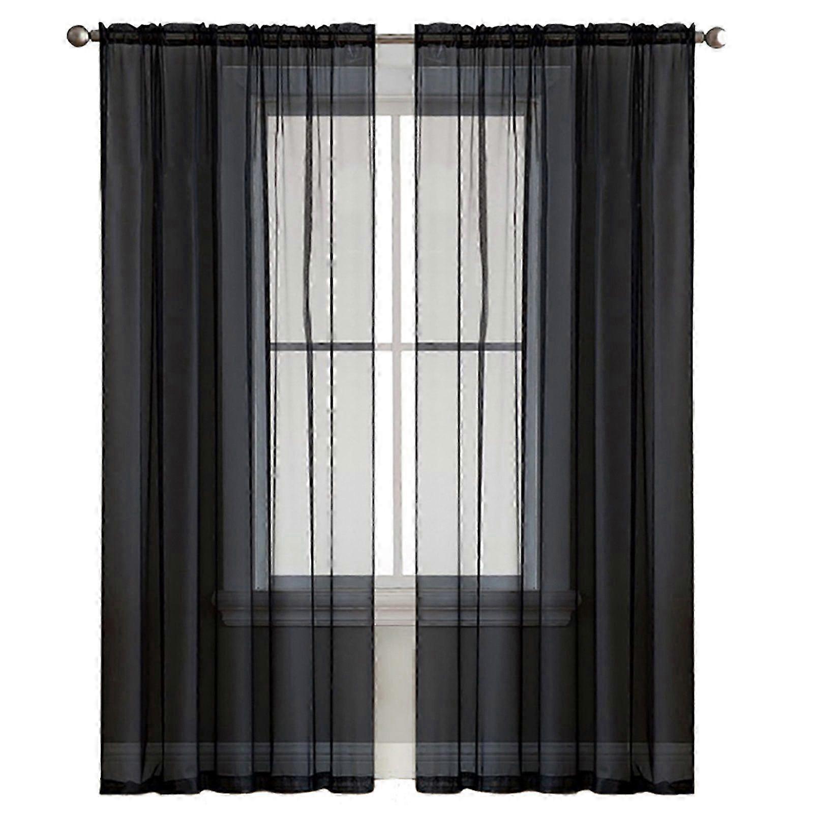 Sheer Curtains Living Room Rod Pocket Window Curtain Panels Bedroom Semi Sheer Voile Curtains Black (39''wx98''l,2 Panels)