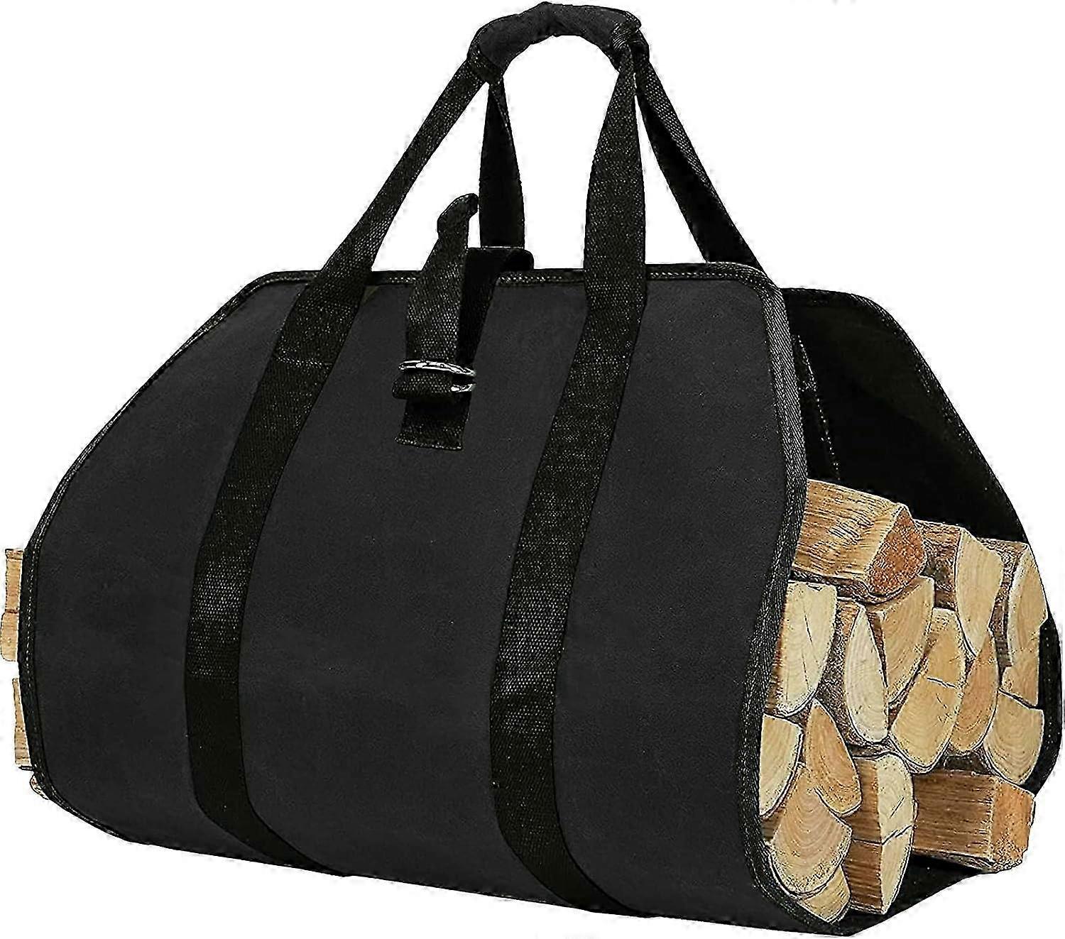 Firewood Carrying Bag, Canvas Fireplace Log Bag, Water Resistant Log Carrying Bag, Foldable Fireplace Accessories (Black)