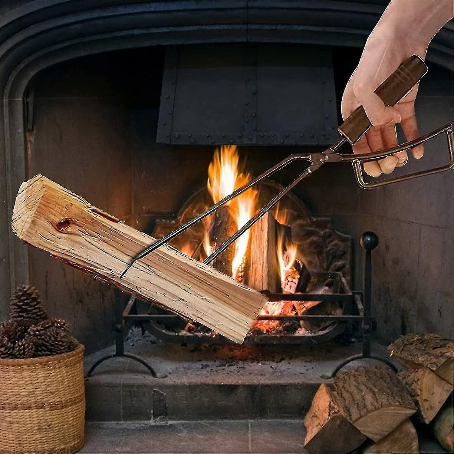 Firewood Tongs, 40cm Heavy Duty, Fireplace Accessories with Anti-scald Feature
