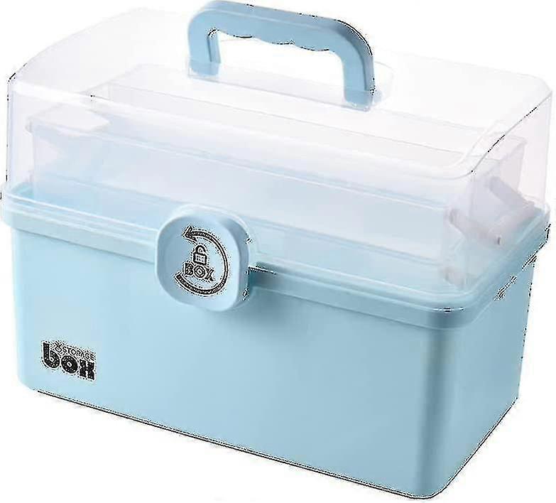 Medicine Box Pill Chest Medicine Cabinet Household Portable First Aid Box Storage Organizer With Foldable 3-layer Large Box Blue Man Jia