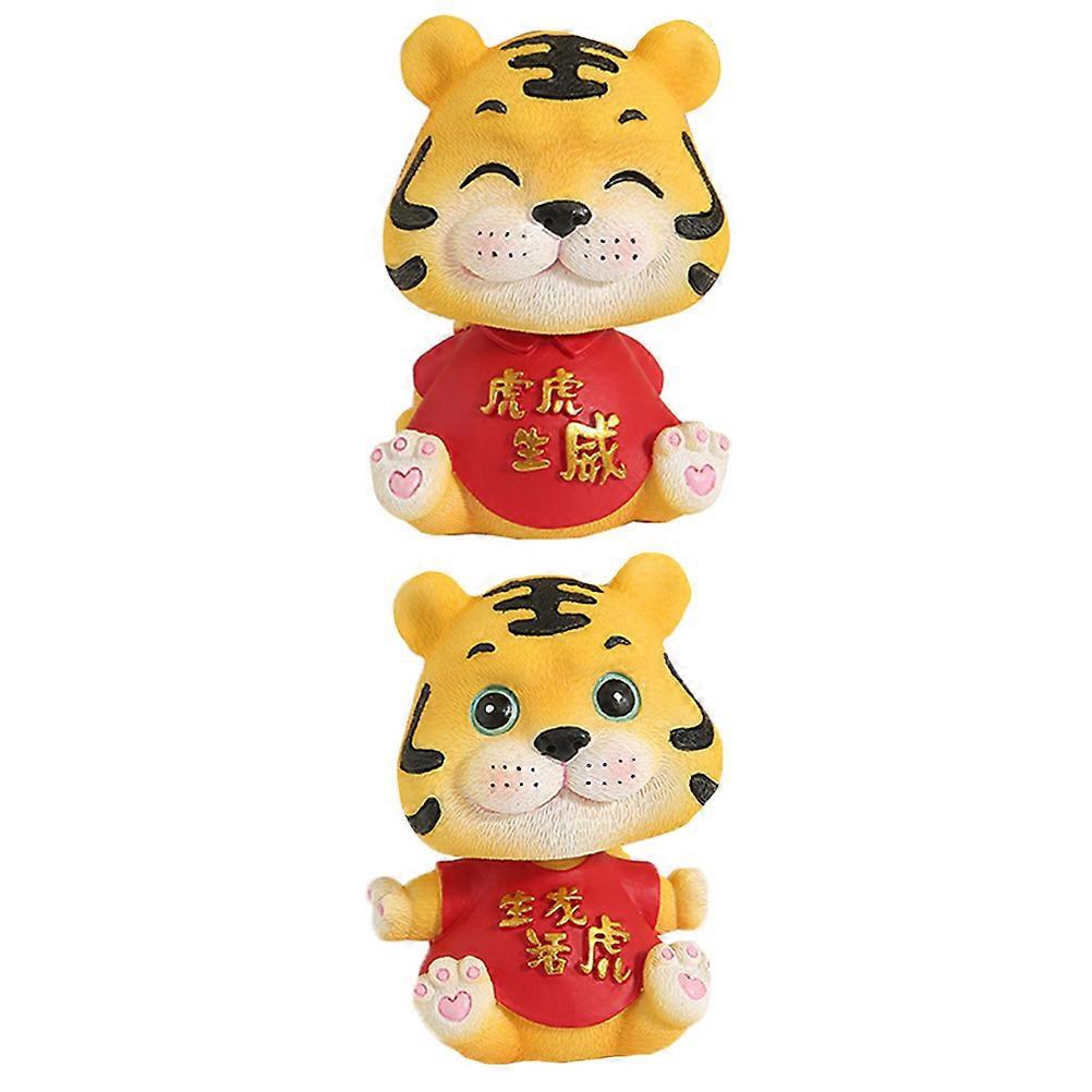 Tiger-Shaped Decorations Resin Animal Doll Decor for 2Pcs