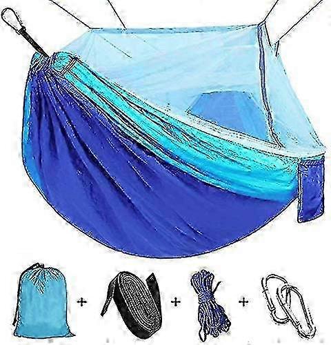 Ultralight Travel Hammock with Mosquito Net, Camping Nylon Parachute for Hiking Garden Outdoor - Blue Sky