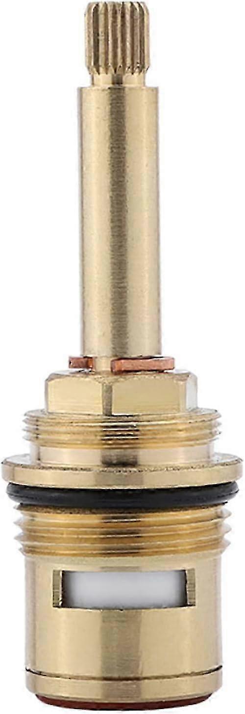 - High quality construction: The quarter-turn tap cartridge is made of brass and ceramic, offering durability and resistance to high temperatures for long service life. - Reliable sealing: Includes a black rubber lock washer to seal the faucet, prevent dripping, and reduce the need for future replacements. - Easy identification: Red and blue O-rings at the bottom of the spool distinguish hot and cold water during installation. - Dimensions and compatibility: Valve core with 20 splines (teeth) on top; outside diameter 7.6 mm; inside diameter 4 mm; total length 82 mm; BSP 3/4" thread. - Practical applications: - Replacing a worn cartridge in a residential bathroom faucet with 3/4" BSP thread. - Replacing a cartridge in a kitchen or utility faucet using 3/4" BSP thread. - Suitable for high-temperature hot water lines in homes or light commercial settings. Note: Due to the light and screen setting difference, the item's color may be slightly different from the pictures. Please allow slight dimension difference due to different manual measurement.