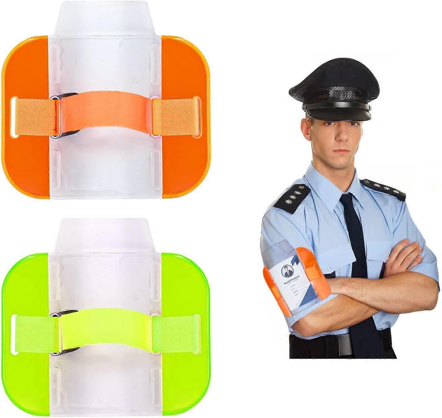 Fluorescent ID Armbands - Security Badge Holders (Green/Orange, 2pcs)