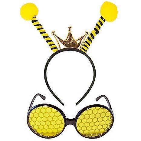 Bee Headband and Glasses Set Bee Antenna Headband with Bee Sun Glasses Honey Bee Costume Accessories| Halloween Bumblebee Cosplay Party Favors for W
