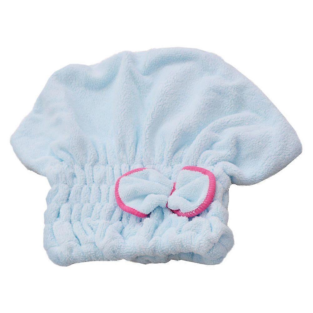 Bowknot Hair Drying Coral Fleece Shower Caps Elastic Bath Hair (Light Blue)