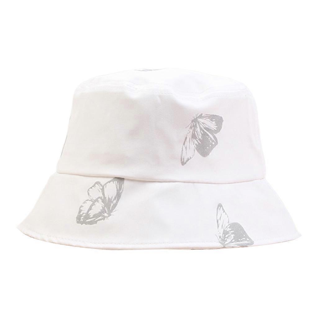 Japanese Style Unisex for Butterfly Print Bucket Hat Harajuku Hip Hop Short Brim Summer Outdoor Sunscreen Foldable Adjustable Fisherman Cap White